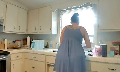 Prego mature girl gave herself to her husband right in the kitchen