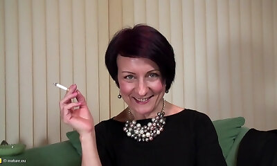 Ravishing mature babe with clean-shaved pussy pawing it in an robust solo shoot